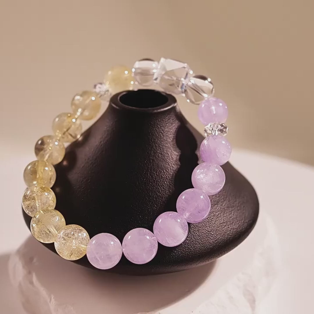 You’re manifesting more — more opportunities, more success, more freedom. But not at the cost of your peace. Our handmade Calm Abundance Bracelet, crafted with Lavender Amethyst, Citrine and Clear Quartz helps to balance your energy between receiving and resting. Soft lavender meets golden sunlight, anchored by a bold, faceted Clear Quartz centerpiece. The bracelet visually embodies balance: calm + shine, spirit + success.