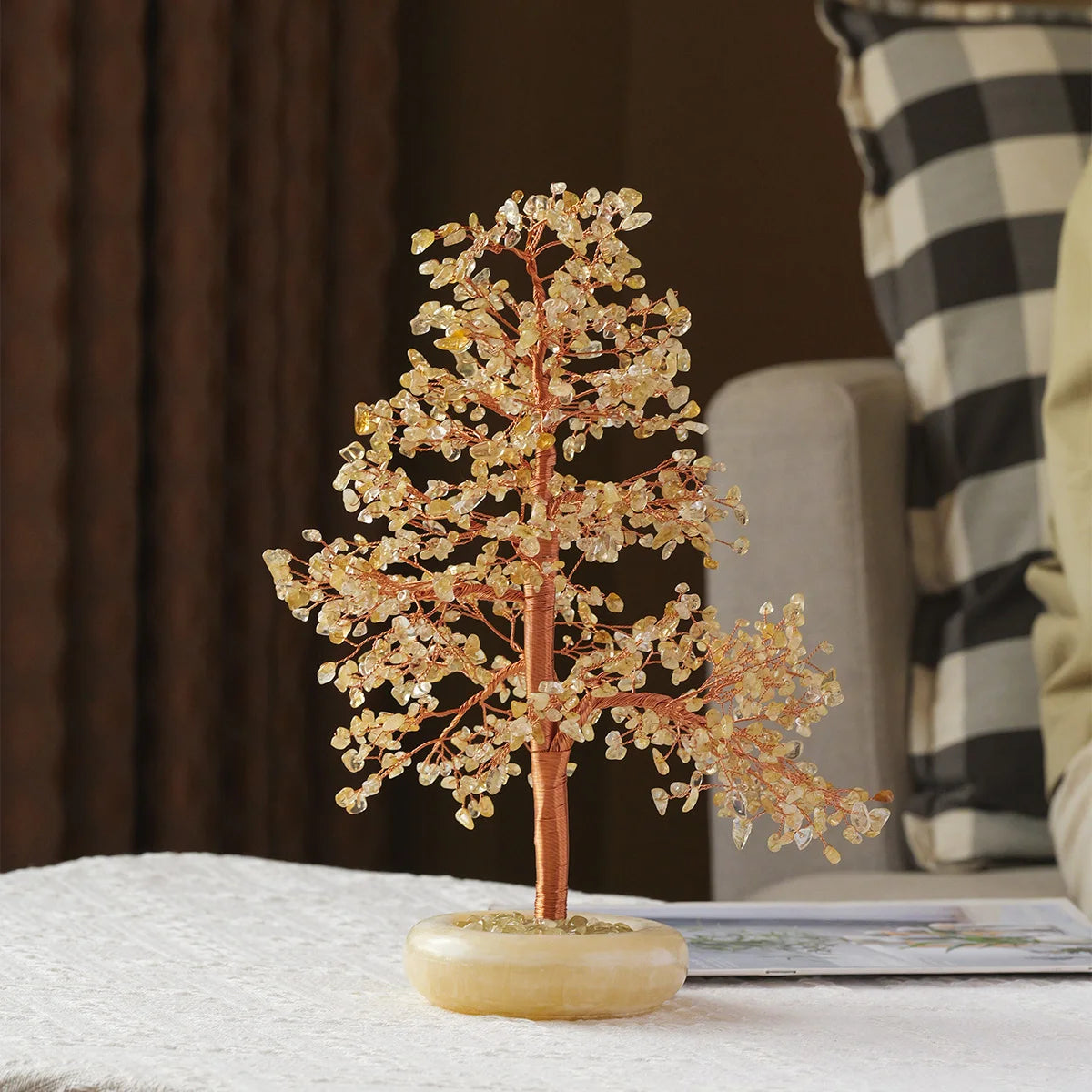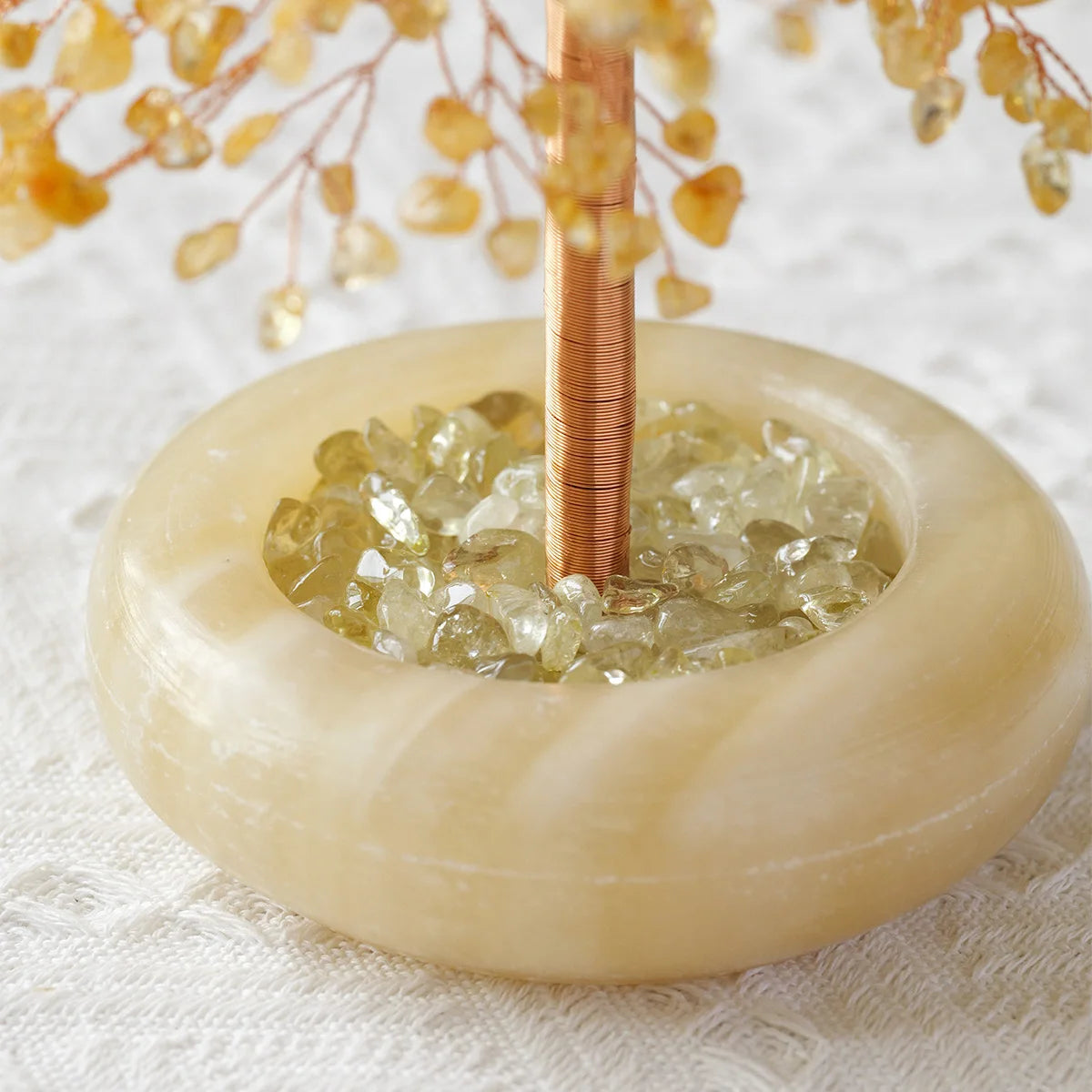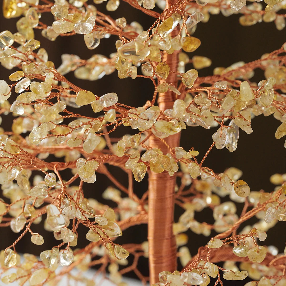 Known as the Merchant’s Stone, Citrine is celebrated for attracting wealth, success, and confident energy. Every copper wire is shaped by hand, weaving energy and artistry into every branch, while the warm yellow glow of citrine fills the tree with optimistic light.