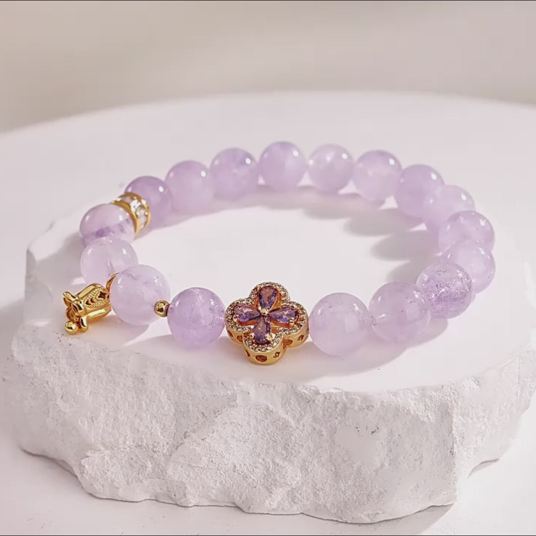 Crafted with Lavender Amethyst, our Lucky Clover Amethyst Bracelet is more than beautiful a beautiful bracelet, it’s energetic grace in wearable form that brings in calmness and intuition.