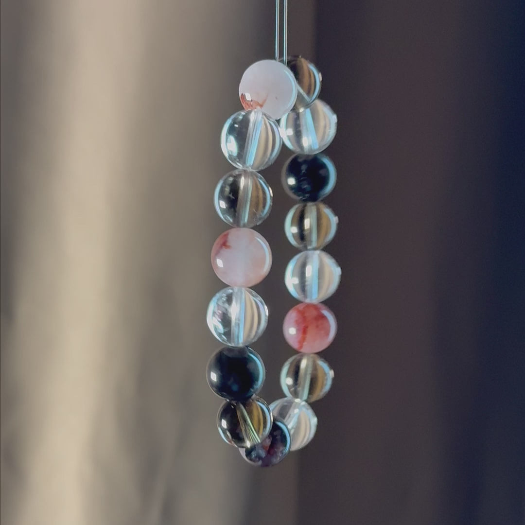 Seeking for a protection bracelet while needing your mind to be clarified? Our Protection Clarity Bracelet has a harmonious blend of elegance and energy of Clear Quartz, Smoky Quartz, Red Hematoid Quartz & Silver Obsidian.