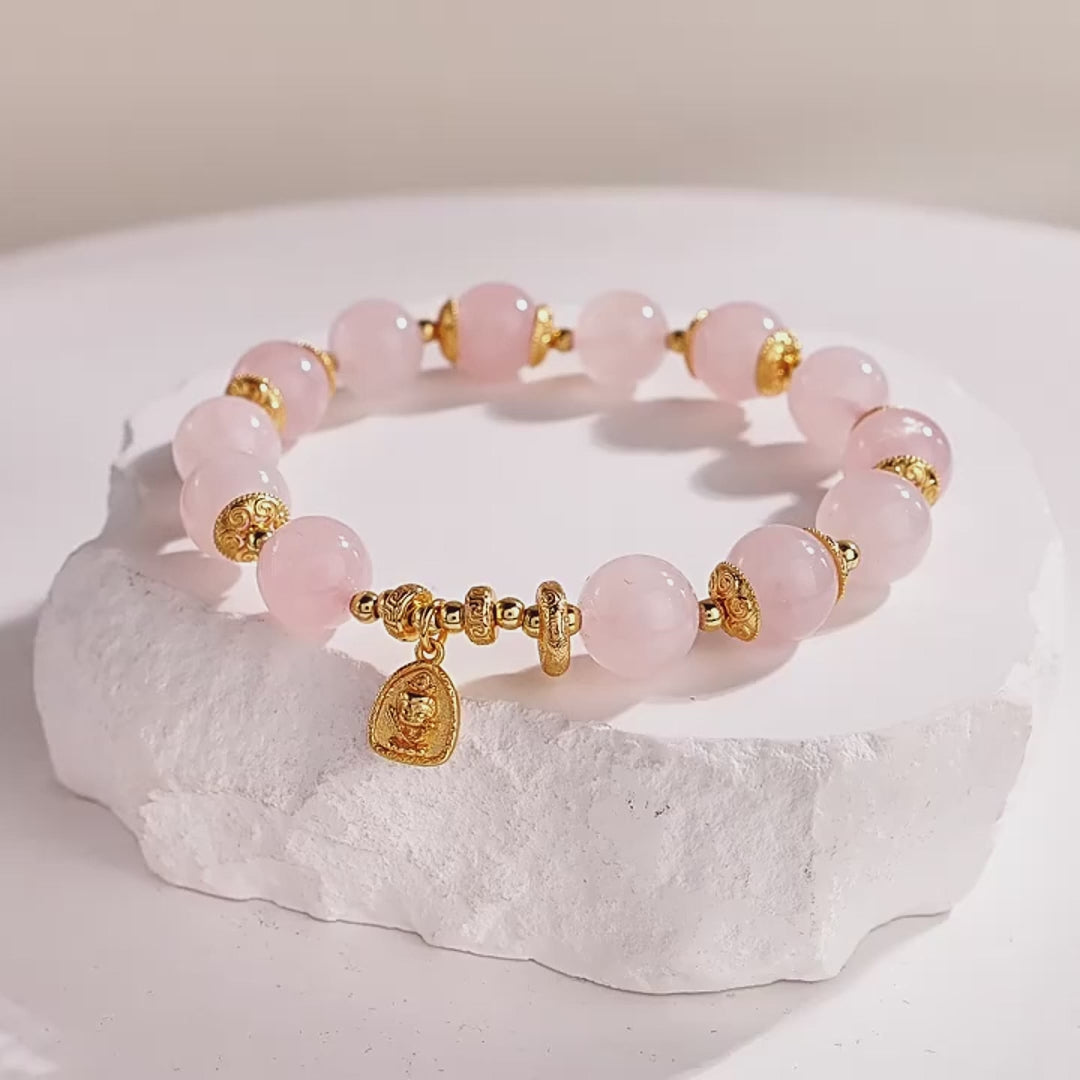 Our Self-Love Amulet Bracelet is a sacred blend of tenderness and quiet power. Handcrafted with luminous Rose Quartz — the ultimate Stone of Unconditional Love and crowned with a gold-toned Tibetan protection charm, this piece is for those who are ready to nurture themselves deeply while staying spiritually grounded.