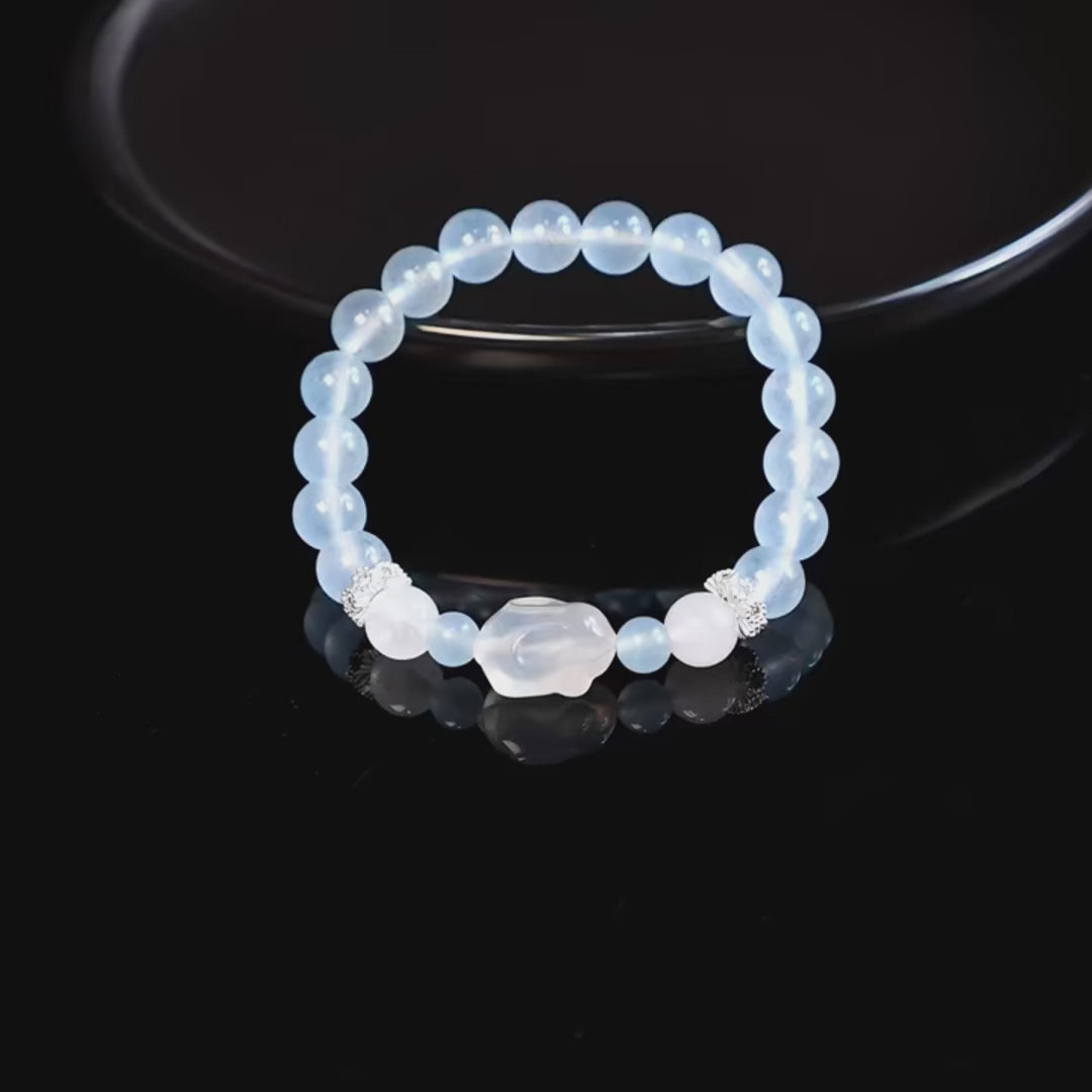 "With the Serenity Rabbit Bracelet, let the unity of chalcedony and agate be your charm against the noise of the everyday."