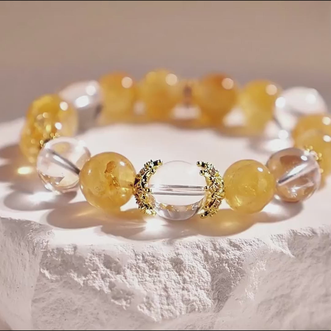 Handcrafted with rich, golden Citrine which attracts wealth and abundance and Clear Quartz that reflects your need for mental clarity and intention.